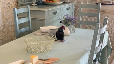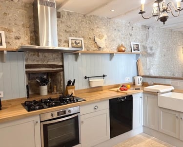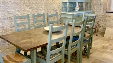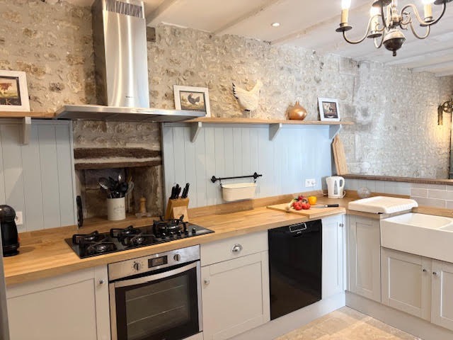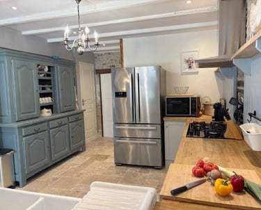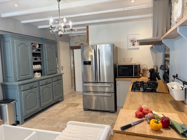 Large fully fitted and extremely well stocked rustic style Kitchen, with dishwasher, American Fridge/freezer, Nspresso coffee machine, gas hob, electric oven and dining area for 8 people. Direct access to the garden.