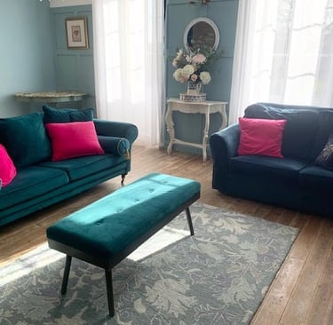 Comfortable lounge with large smart TV, music speaker, assortment of family games and selection of books, wood burner (logs are provided at small extra cost)