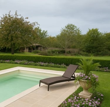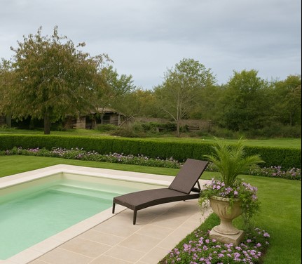 Beautiful in-ground heated pool with sun loungers and umbrellas,